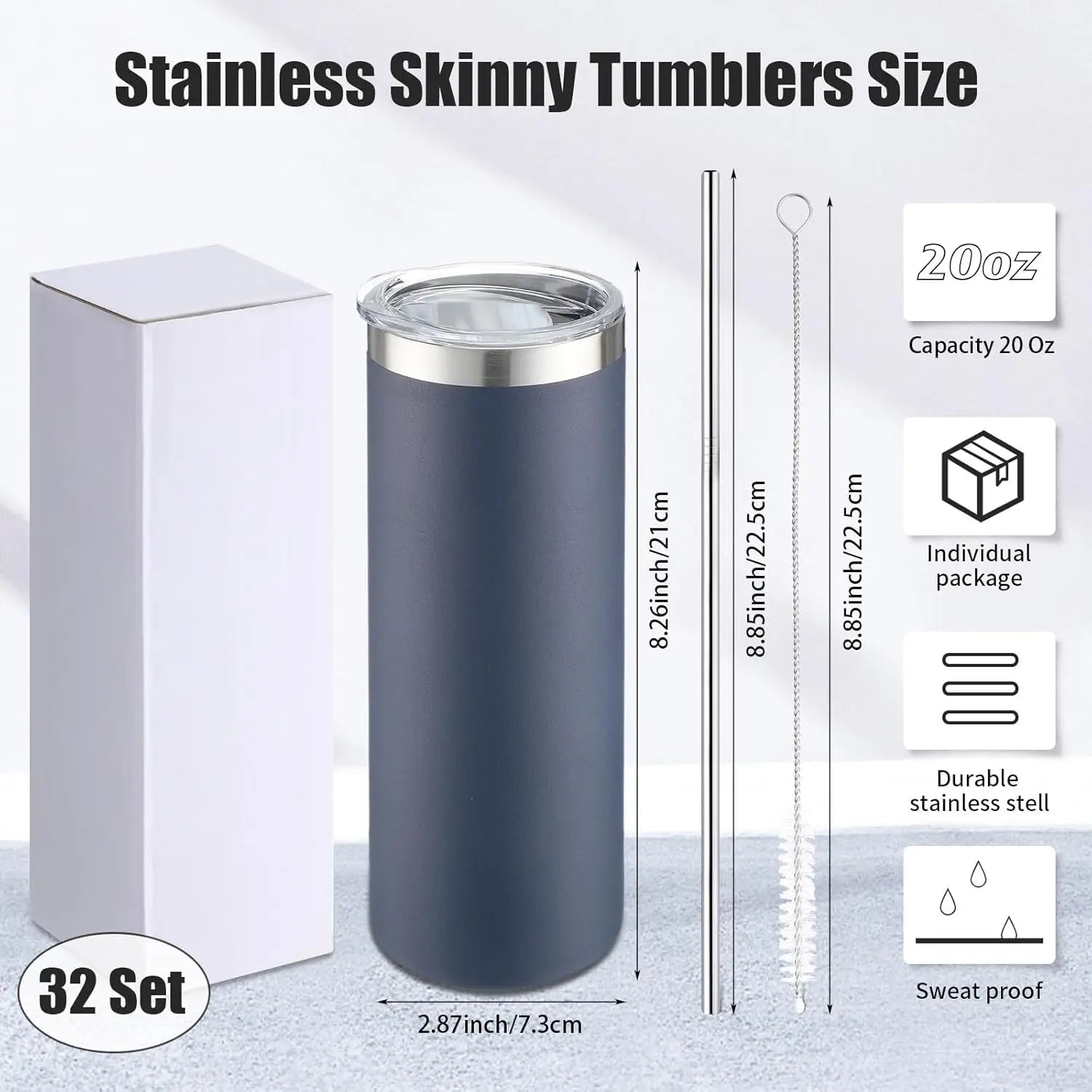 32 Skinny Tumblers, 20 Oz Stainless Steel Tumbler, Bulk